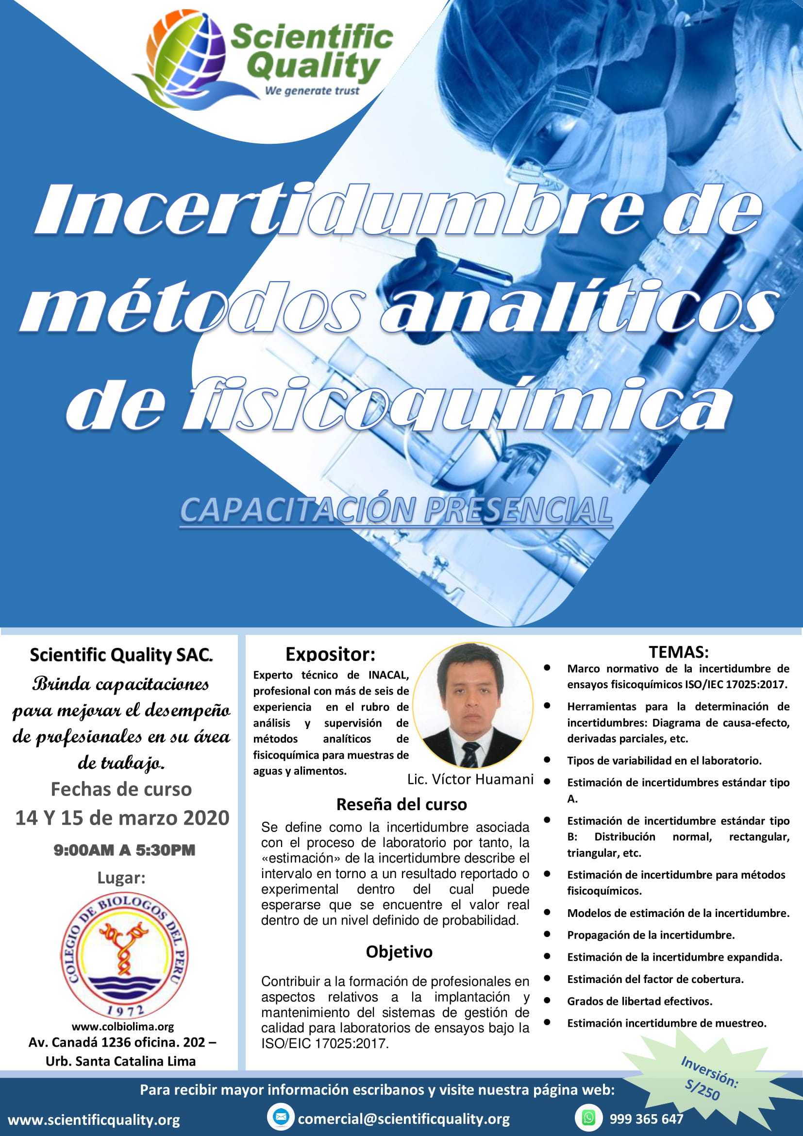 CAPACITACIÓN: INCERTIDUMBRE DE MÉTODOS ANALÍTICOS DE FISICOQUÍMICA